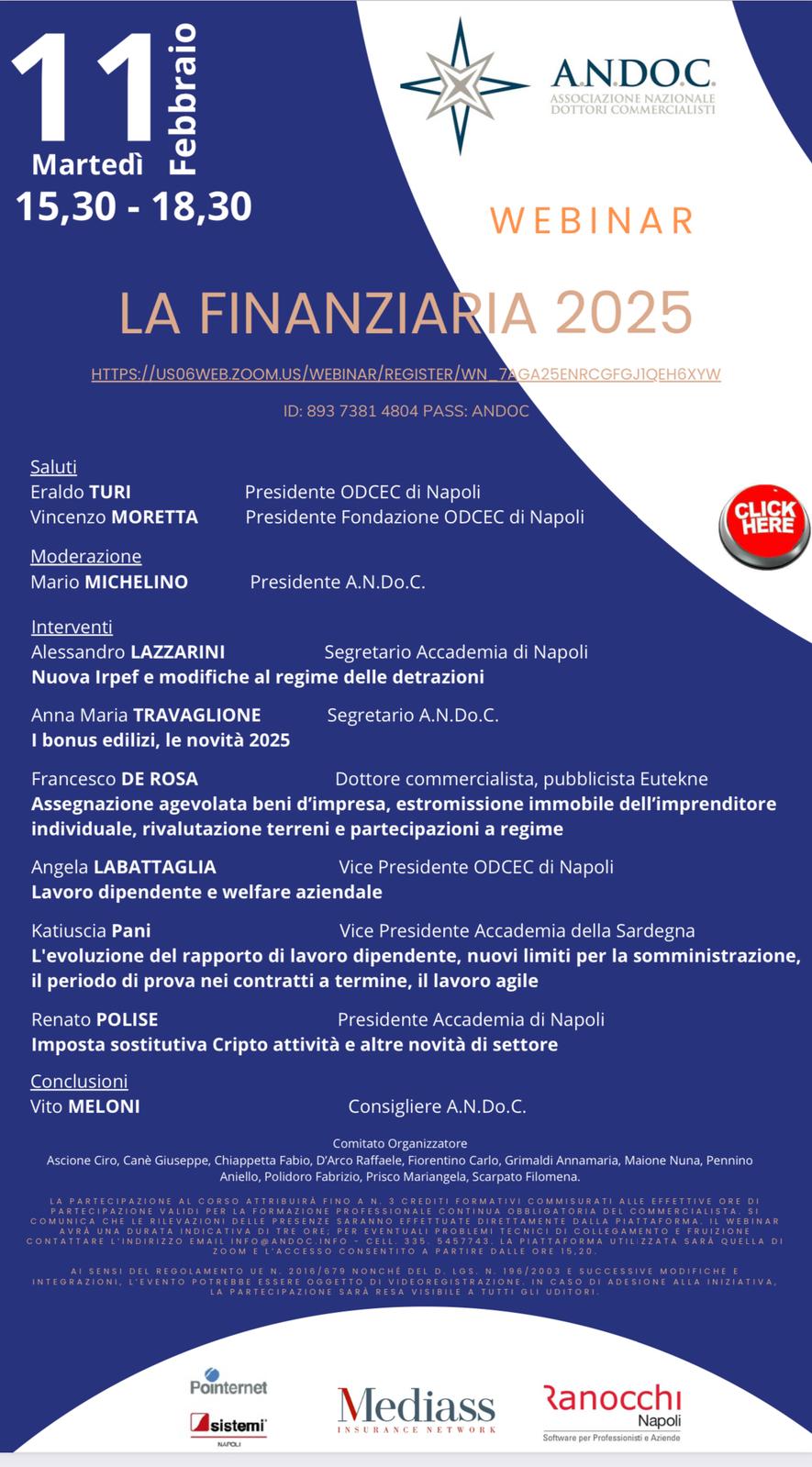 Se previsto per l'evento, sarà possibile anche rivedere le registrazioni dei webinar e/o la possibilità di scaricare il materiale formativo.
