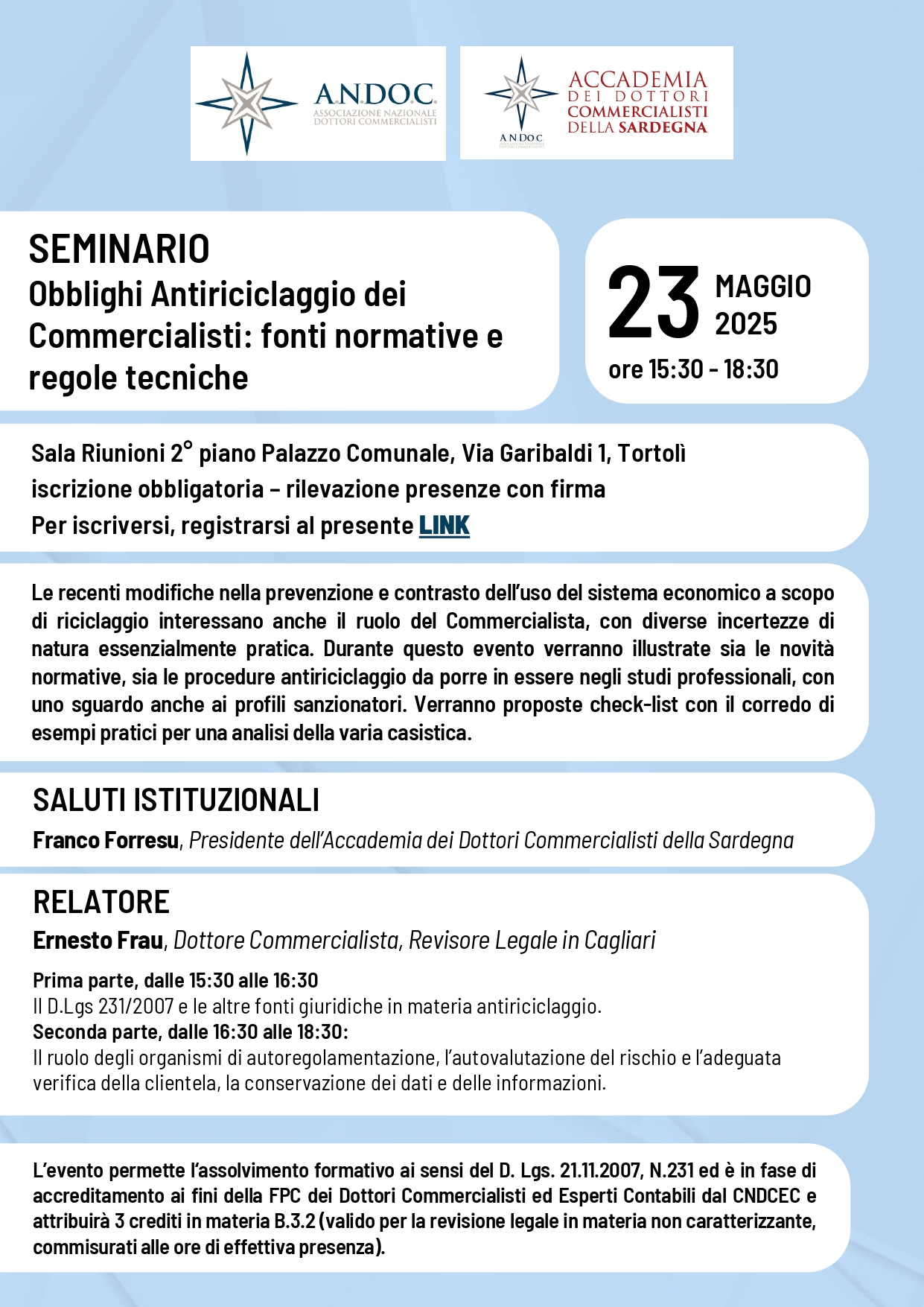 Per tutti gli eventi riportati in elenco A.N.Do.C mette a disposizione dei partecipanti la possibilità di scaricare gi Attestati di frequenza.