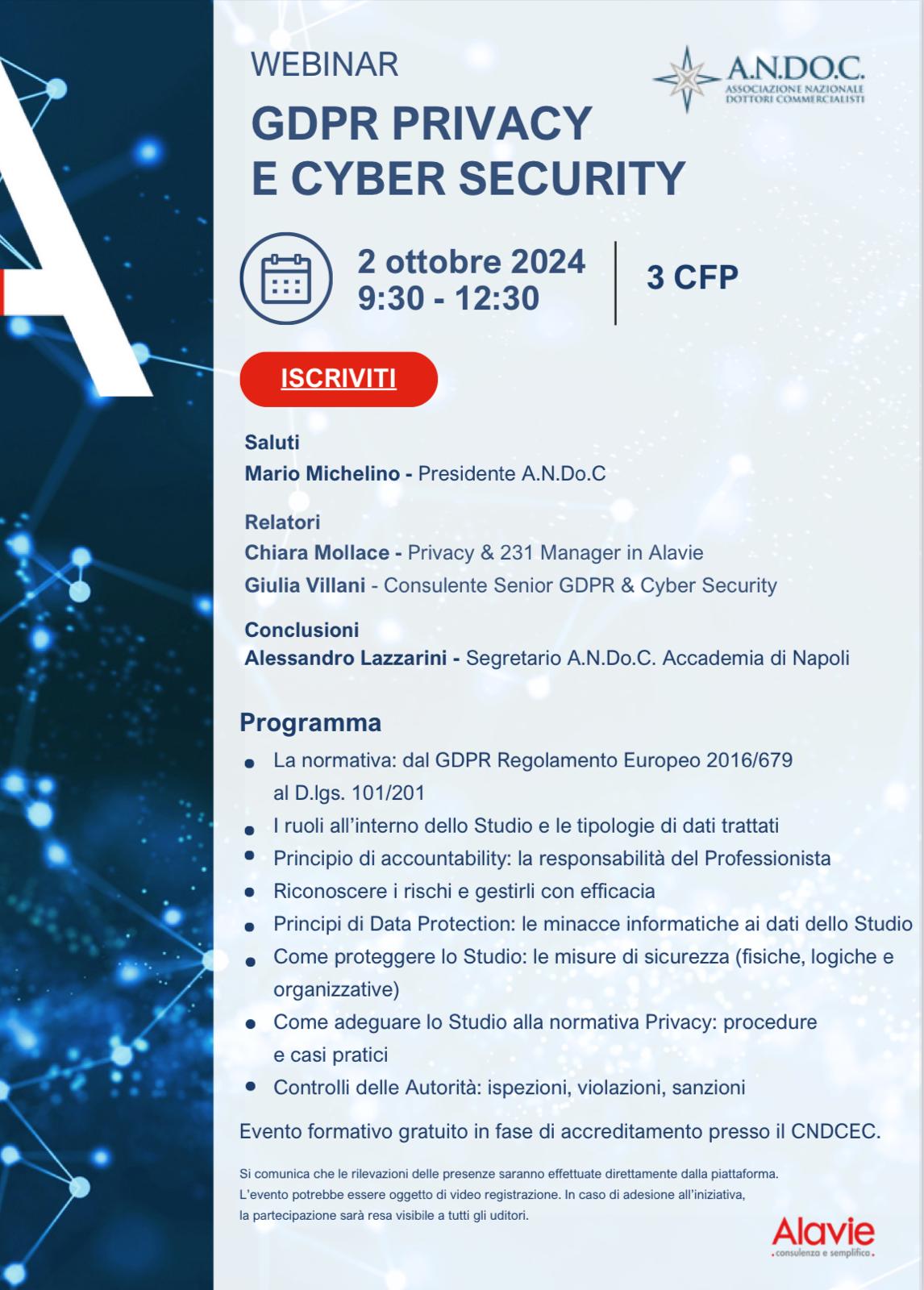 GDPR, Privacy e Cyber Security
